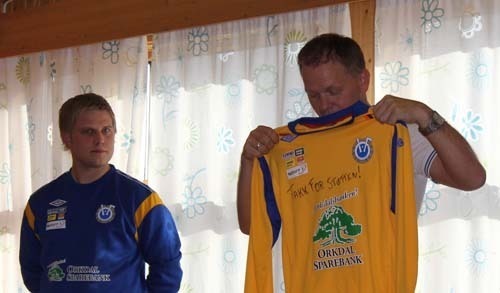 Fv. Kari Holseth, Øyvind Bakken, OIF fotball, Ottar Ustad, kaptein OIF, Terje Sletvold, Orkdalsbanken. Foto: Marit Mjøen