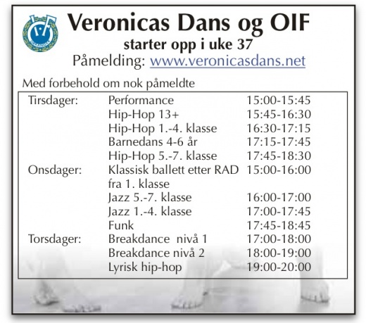 Det gode samarbeidet mellom Orkanger IF og Veronicas Dans fortsetter. Her er høstens treningstilbud i MaxGyms lokaler på Orkanger for alle som er interessert i dans: